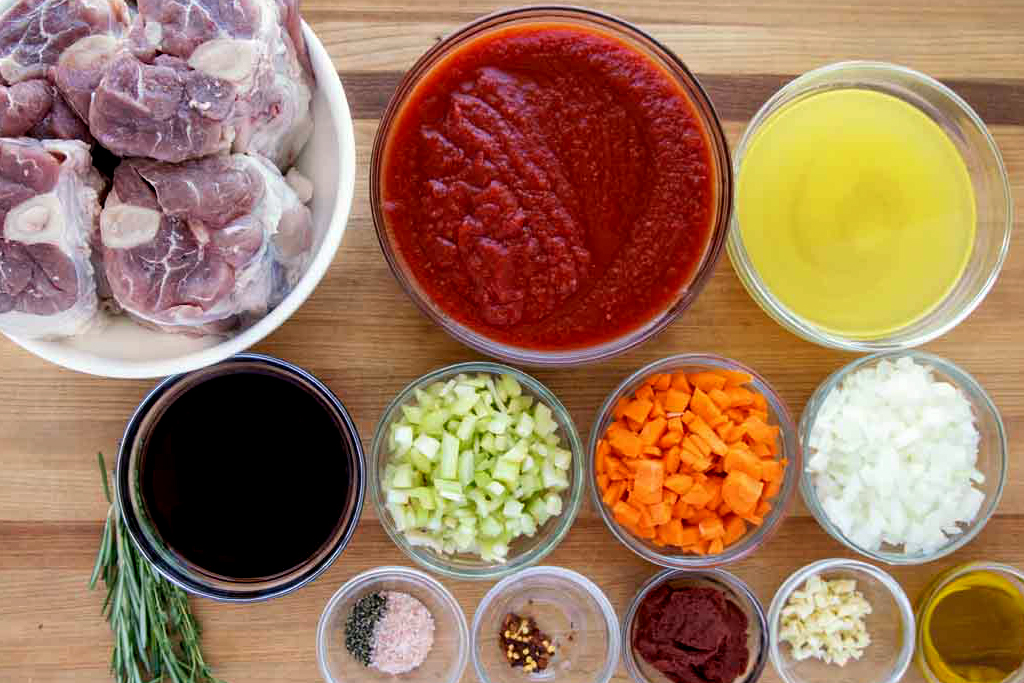 This pork osso buco with shank isn’t as rich as veal, but I like it better. If you want veal, you can use it here, too.